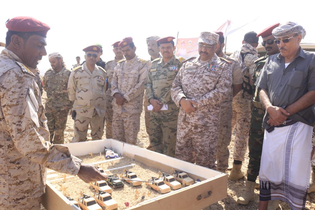 بحضور اللواء التميمي إجراء مشروع تكتيكي لاقتحام سرية مشاة موقع محصن بدوعن