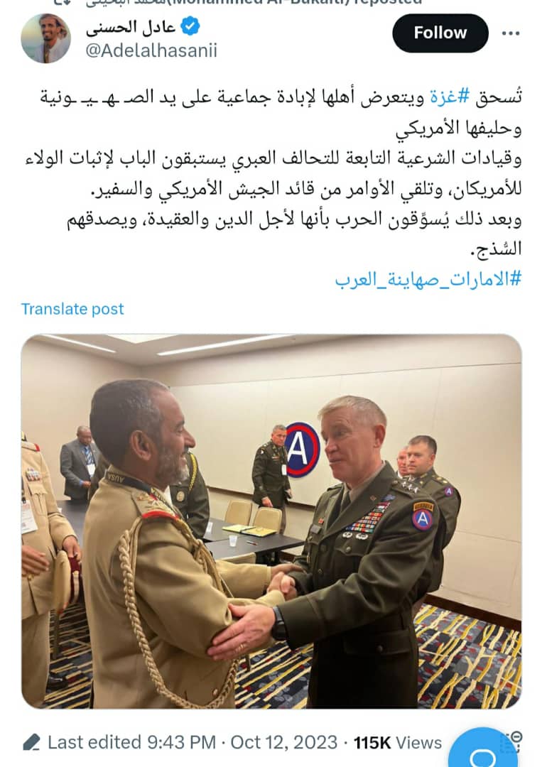 وقبل العملية الإرهابية بيومين نشر القيادي الارهابي عادل الحسني تغريدة وصف رئيس هيئة الاركان العامة بالصغير الذليل الذي قبَّل الأيادي الأمريكية التي كانت تذبح أهلنا في غزة حسب تعبيره.