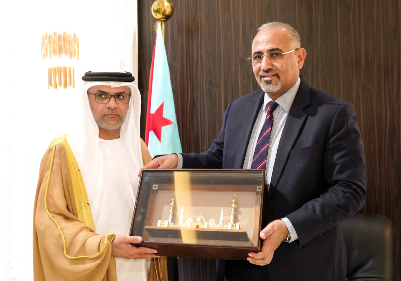 وثمّن الرئيس الزُبيدي، خلال اللقاء، المواقف الأخوية المخلصة لدولة الإمارات إلى جانب بلادنا ومساندة شعبنا في مختلف الظروف، معربا عن تقديره للدعم الأخوي اللامحدود الذي تقدمه دولة الإمارات لشعبنا في المجالين الإنساني والتنموي، وفي مقدمتها حزمة المشاريع التنموية المقدمة من قبل الحكومة الإماراتية في مجالات الأمن، والطاقة، والمياه والصرف الصحي، والتربية والتعليم، والصحة.