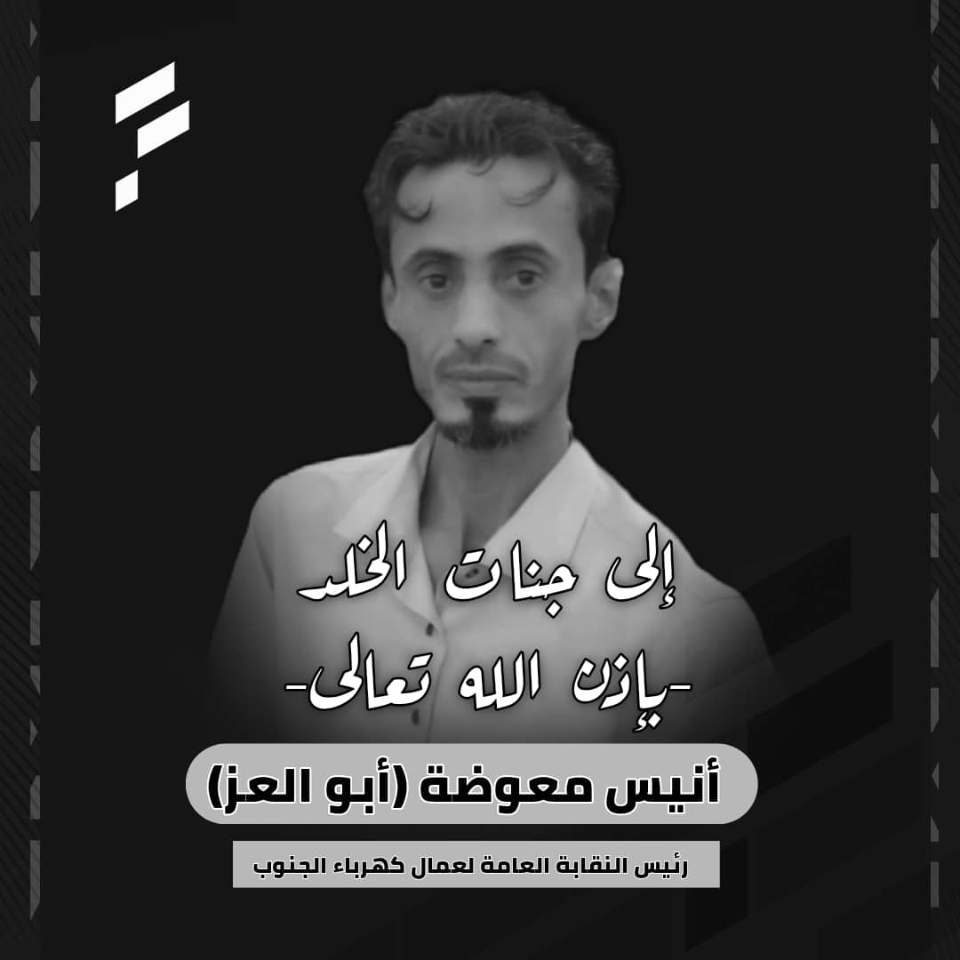 تـنـظـم الـنـقـابة الـعــامة لـعـمال كـهــرباء الجـنـوب والأتحـاد الـعـام لـعـمـال نـقـابـة الجـنـوب يــوم غــد الأحـــد فــي تـمــام السـاعـة الـعـاشــرة صـبـاحـاً أربـعـيـنـيـة فـقـيـد الــوطن الـمرحـوم الأسـتـاذ انيـس صــالح مـعـوضة القـطيبي فـي مبـنى الأتـحـاد الـعـام لـعـمـال الجـنـوب بمديرية المـعلا بالـعـاصمة عـدن بالإشـتراك مع عـائلـة الـفـقـيد المـنـاضـل والنـقابـي الـبـارز واعـتـرافـاً وتـقـديـراً لـمـا قـدمـه فـي حـيـاتـه الـعـمـليـة والـنـقـابـيـة وتـرحماً عـلـى روحـه الـطـاهرة إذ كان المـثال والـقـدوة فـي الـعـمل والتـفانـي والأخـلاص اثـناء حـيـاتـه الـزاخـرة بالـعـطـاء والإنـجـاز وخـدمـة للـعـمال والعـمل النـقابي الجـنوبـي.