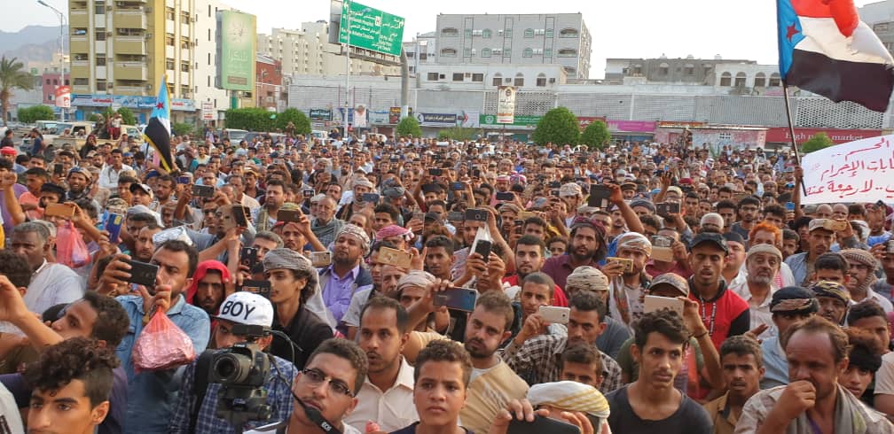 دعوات شعبية للبقاء في ساحة العروض وتواصل التصعيد الشعبي حتى حسم الأوضاع في عدن