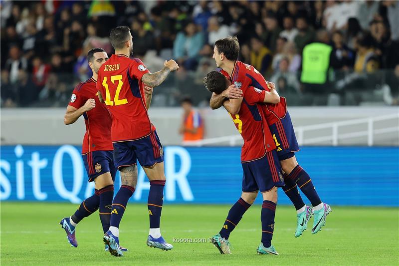 وبهذه النتيجة رفعت إسبانيا رصيدها إلى 18 نقطة قبل جولة من نهاية التصفيات بفارق نقطتين عن إسكتلندا التي تحتل المركز الثاني ب16 نقطة بعد تعادلها مع جورجيا (2-2).