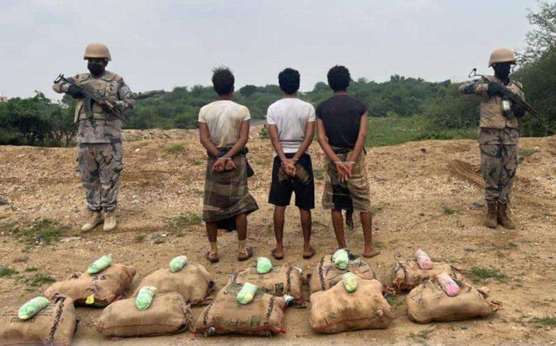ألقت السلطات السعودية القبض على ثلاثة يمنيين مخالفين لأمن الحدود حاولوا تهريب كميات من نبات القات الممنوع من التعاطي والتداول في المملكة.