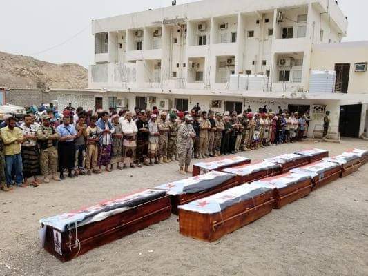 وأفاد ناشطون يمنيون عبر مواقع التواصل الاجتماعي بأن قيادات جنوبية بارزة تشارك في مراسم تشييع منير اليافعي والضحايا الذين سقطوا في الاستهداف الحوثي للمعسكر الأمني خلال عرض عسكري قبل أيام