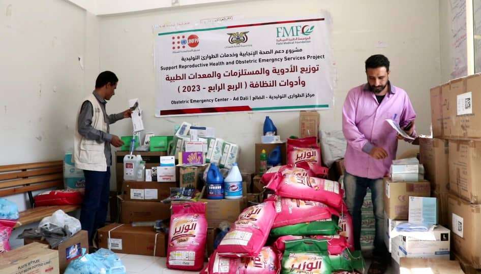 مركز الطوارئ التوليدية بالضالع يتسلم دعما من المعدات والمستلزمات الطبية