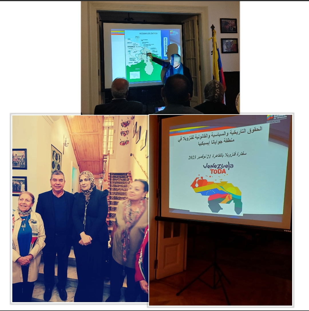 وأكد أن أمريكا تلعب دور غير شريف فى ملف أزمة فنزويلا مع أقليم جويانا واختارت هذا التوقيت بالتحديد بهدف نشر الفوضى الخلاقة قبل الانتخابات الرئاسية وقامت بدعم مرشحة من المعارضة من اليمين المتطرف والتى تعمل ضد صالح بلدها وليس لها اى قاعدة شعبية على الاطلاق كما ان ترشيحها يخالف القانون والدستور وسوف يكون ترشحها فى مقابل اتاحت الفرصة لفنزويلا لاستثمار النفط لمدة 6 شهور ومع ذلك فنزويلا مازالت تدعوا للسلام على أرضها وقامت بعقد استفتاء شعبي سوف يكون فى الثالث من ديسمبر لطرح قضية الاقليم حتى يكون الشعب الوتعى حاضر بمشهد حق تقرير المصير ومشارك فى هذه الخطوة المصيرية وأفاد السفير أن بلاده سوف تلجأ الى جميع الطرق القانونية والسلمية بهدف استرجاع كل شبر من أرضها المسلوبة التى تحتوى على الكثير من الثروات والمعادن الهامة والبترول ومخزون من المياه العذبة .