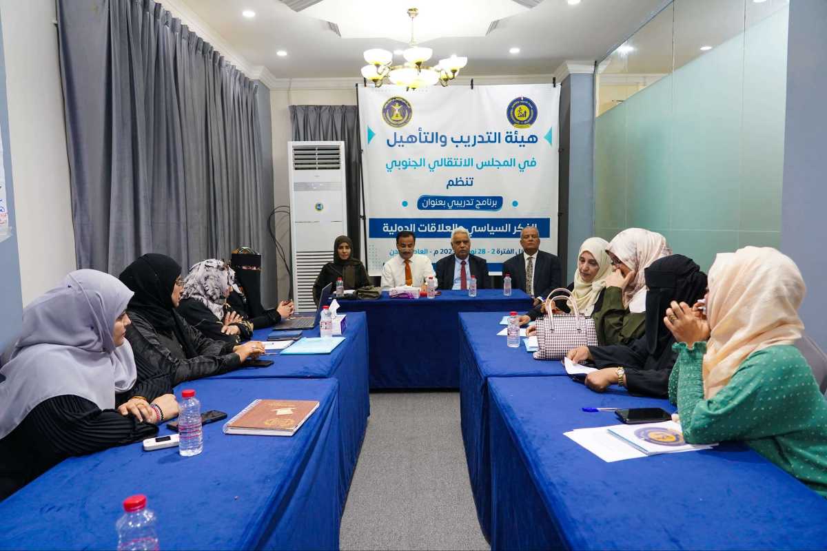 وفي اختتام البرنامج ألقت الدكتورة منى عوض باشراحيل رئيس هيئة التدريب والتأهيل، كلمة اشارت خلالها إلى البرنامج بأنه جاء لتنمية الفكر السياسي للنساء المشاركات، واستشعارا من القيادة السياسية الجنوبية بأهمية التأهيل السياسي والاستجابة لمتطلبات المرحلة الراهنة والمفصلية، منوهة لوجود برامج مستقبلية اخرى يتم الاعداد لها وسوف تشكل نقلة نوعية في الورش والدورات التي تستهدف قيادات وكوادر المجلس الانتقالي.