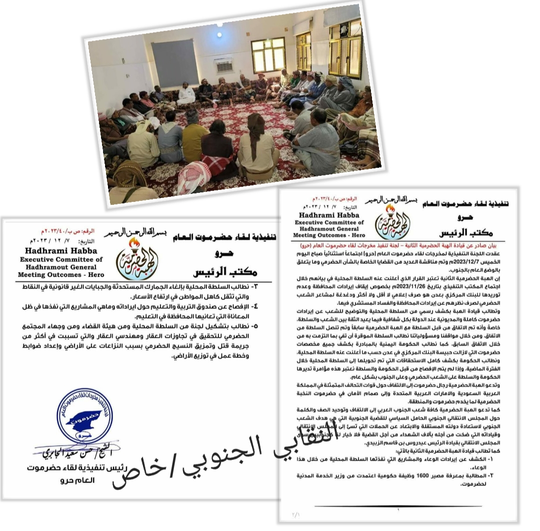 كما تطالب قيادة الهبة الحضرمية الثانية بالآتي: