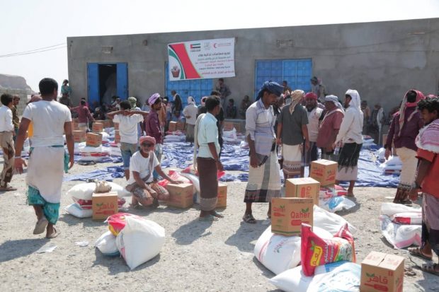 الهلال الإماراتي يواصل تقديم المساعدات الغذائية بحضرموت