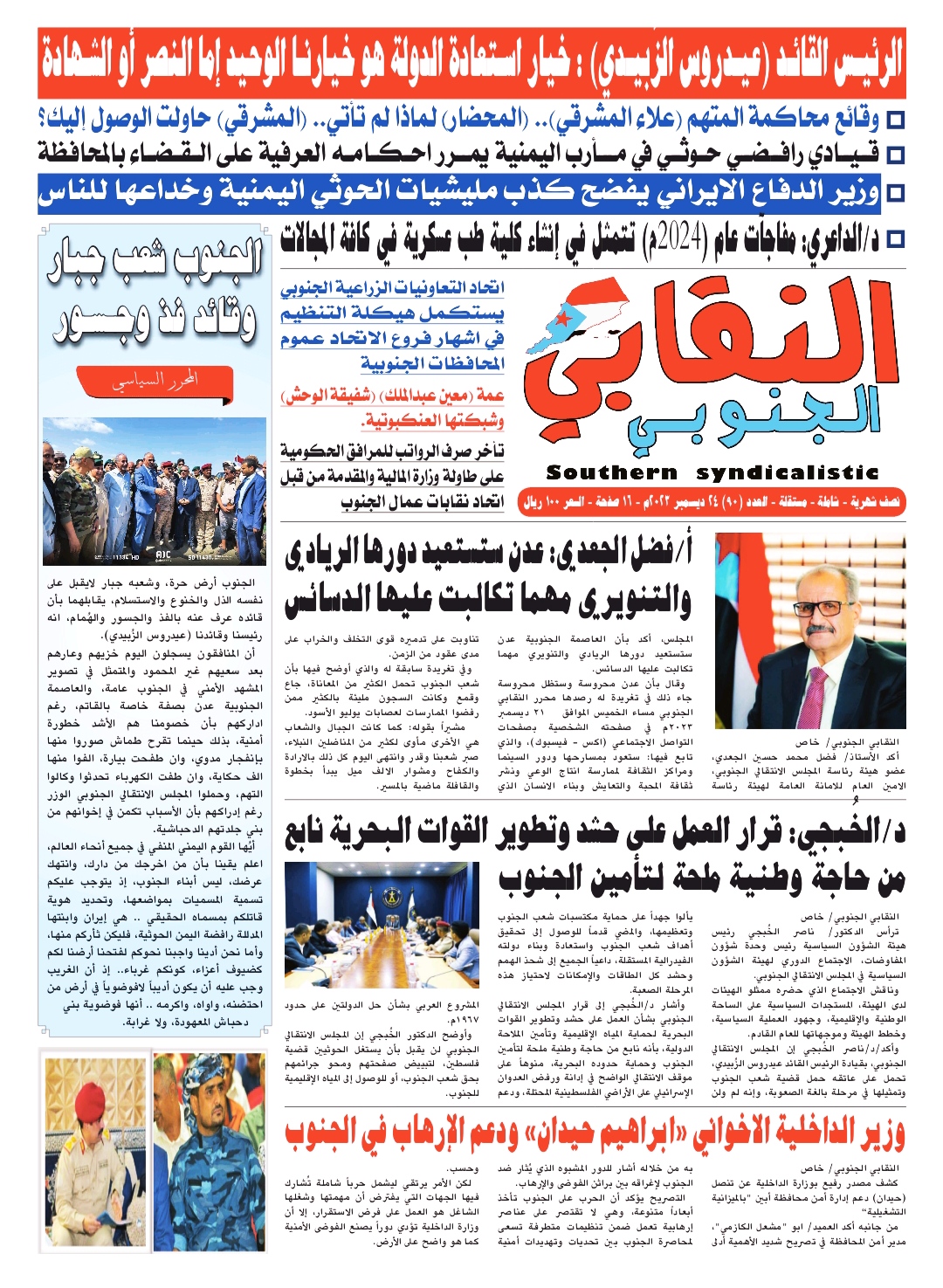 يكشف مخططات الاعداء..العدد( 90) ل( صحيفة النقابي الجنوبي) .. الجنوب وطن لامساومة فيه