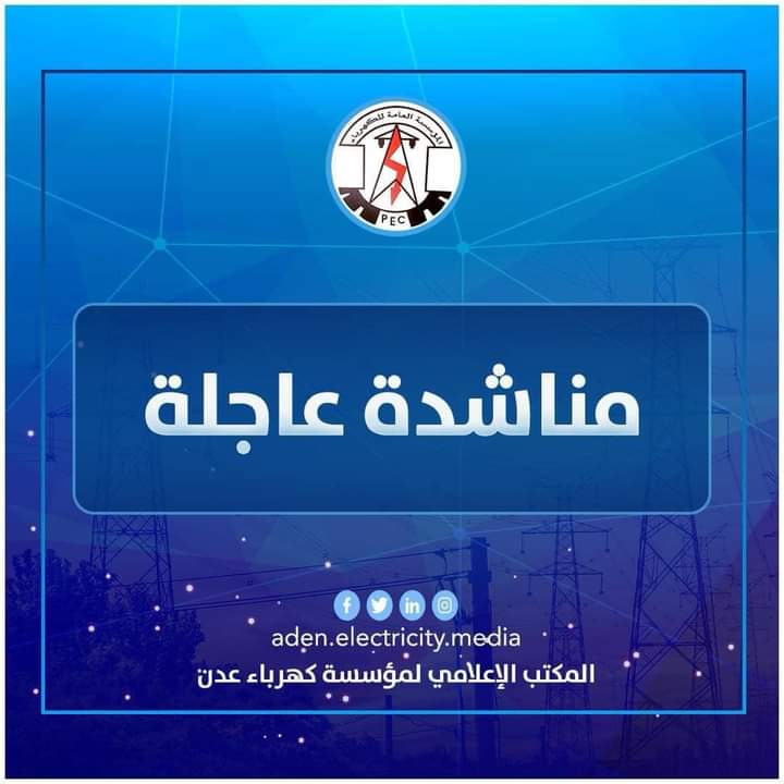 تناشد المؤسسة العامة لكهرباء عدن قيادة محافظة أبين بضرورة التدخل للافراج عن ناقلات وقود النفط الخام القادمة من محافظة شبوة والمخصصة لتزويد محطة الرئيس بترومسيلة بالوقود وذلك عقب احتجازها من قبل مسلحين في منطقة خبر المراقشة