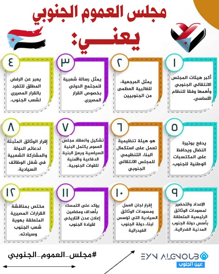 هو اداة الجنوب لتحصين قرارته السيادية التي تتعلق بهوية شعب الجنوب وسيادته على ارضه بعتباره الجامع الشامل لكل اطياف المجتمع الجنوبي والمعبر عن ارادتهم السياسية باعتباره اكبر الهيئات واهمها على الاطلاق”.