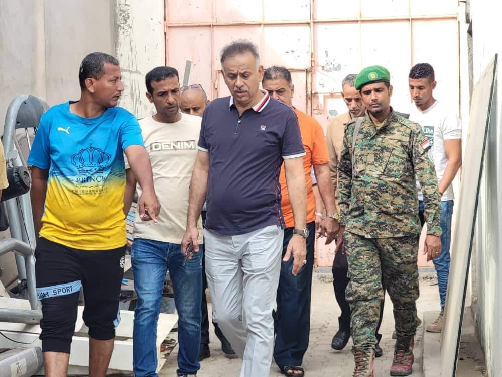 الجاوي يطلع على اعمال تجهيزات صالة اللياقة البدنية بملعب باوزير بالمعلا
