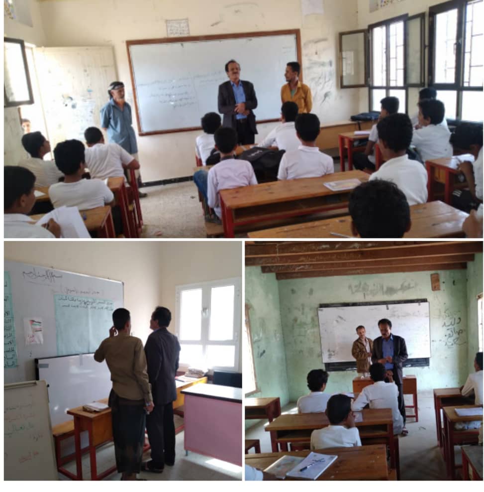 وخلال الزيارة التقى غانم مدير مدرستي عمار بن ياسر الاستاذ نضال محمد سيف وعائشه للبنات الاستاذ طلال علي مقبل باقش وكادر المدرستين واطلع على الفصول القديمة المتضررة بفعل عوامل التعرية كما التقى بمديرة الوحدة الصحية بالمنطقة.