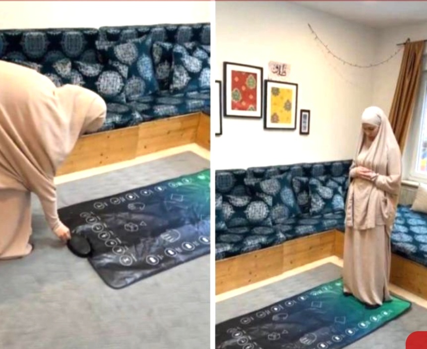 تناول رواد مواقع التواصل الاجتماعي مقطع فيديو لسجادة إلكترونية مُثبت بها سماعات خارجية تصدر صوتًا لأحد الأئمة وتمنح المصلي خيارات أداء الصلوات الخمس خلفه.