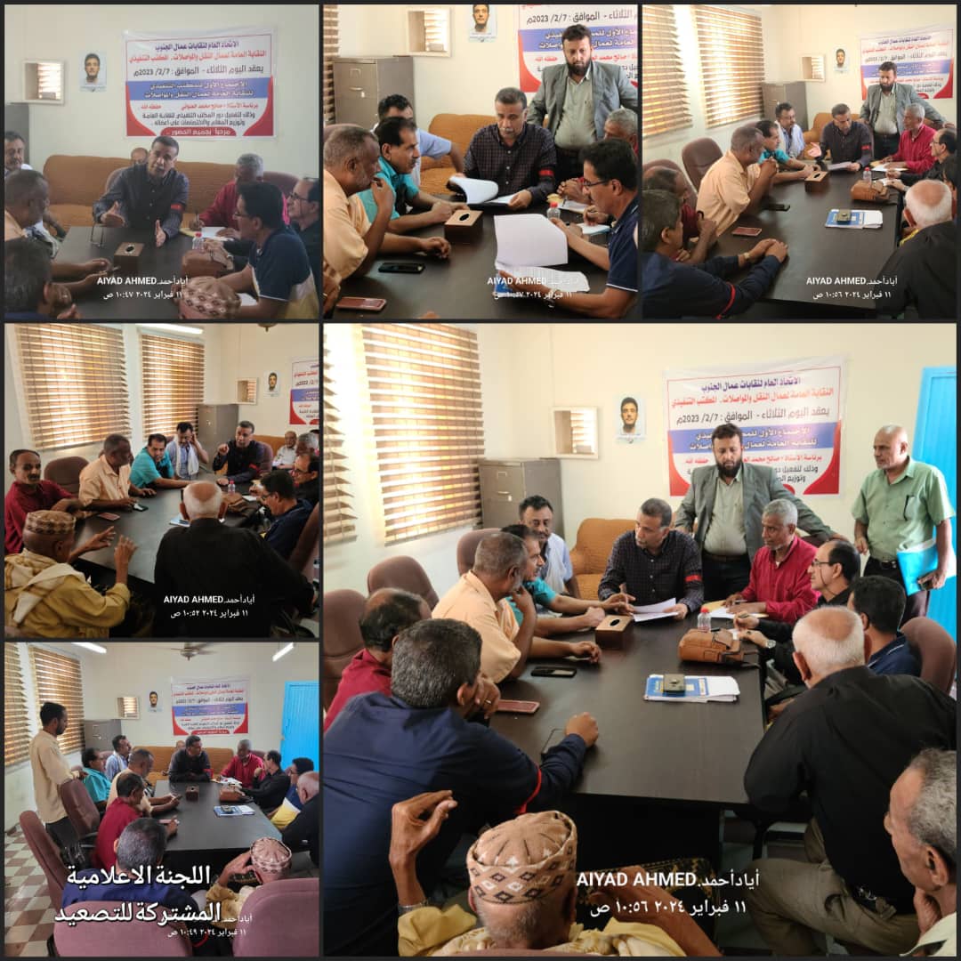 وفي الاجتماع تم مناقشة مخرجات اللقاء التشاوري الذي عقد في يوم الاربعاء الماضي الموافق 7\2\2024م وكذلك مناقشة مستفيظة حول عدد من القضايا وفي مقدمتها الوضع الاقتصادي المتدهور والحالة المعيشية الصعبة لموظفي وعمال الجنوب وانبثق عن هذا اللقاء تشكيل لجان مشتركة للتصعيد وهي :
