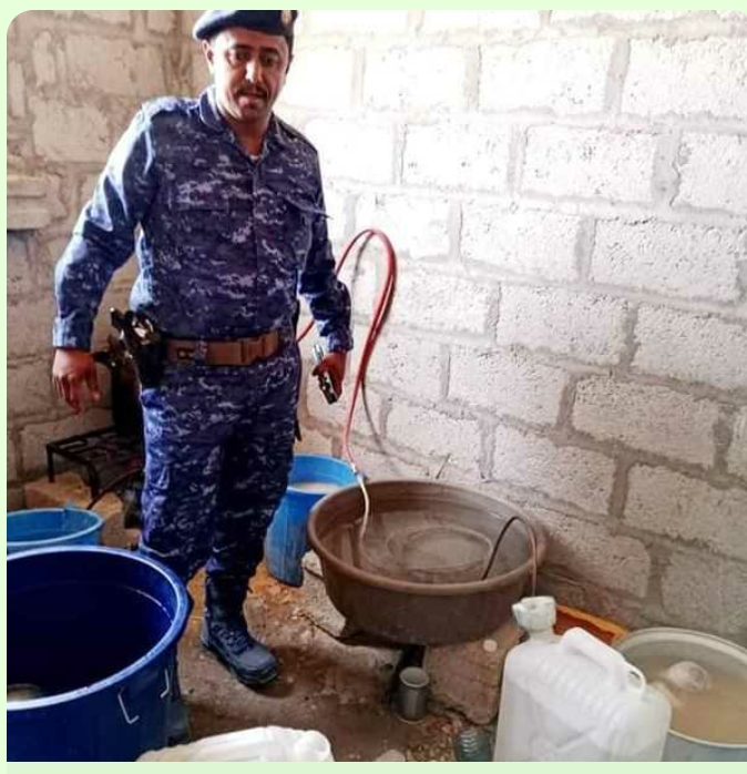 وأوضح المقدم علي مسعود الدحبول قائد شرطة الدوريات وامن الطرق بأن وحدة من شرطة الدوريات تمكنت من ضبط مصنع للخمر البلدي وتقطيرة بواسطة أدوات تقليدية.