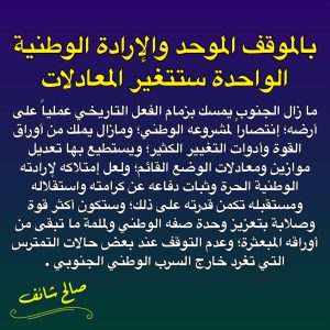 هذا ما قاله أ/ صالح شائف : بالموقف الموحد والإرادة الوطنية الواحدة ستتغير المعادلات