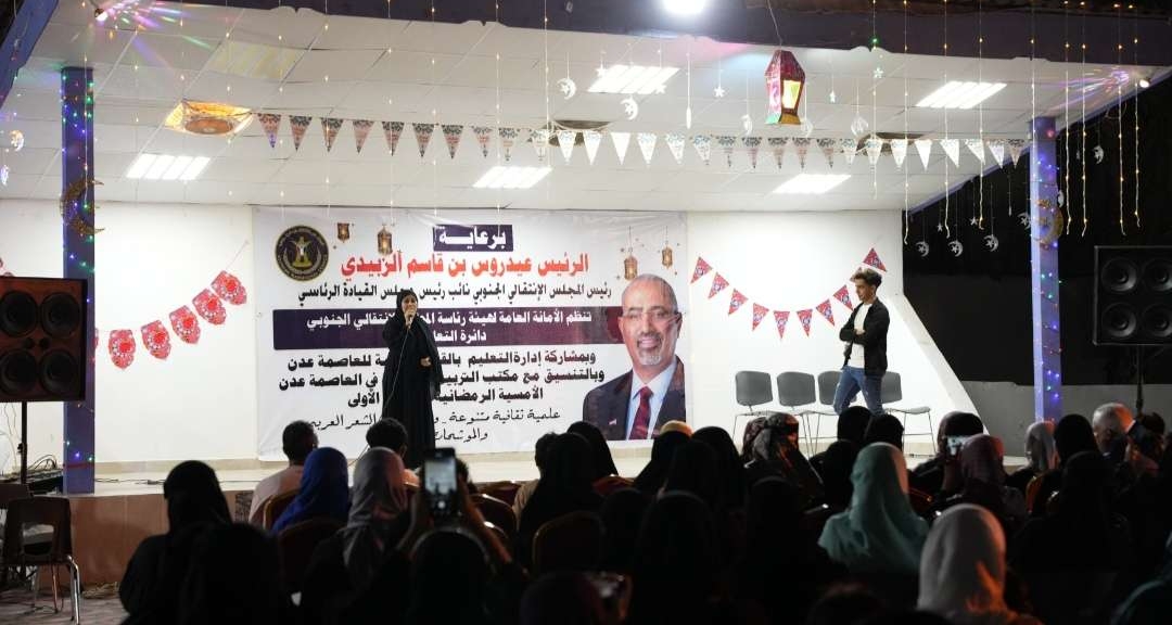 نظمت دائرة التعليم بالأمانة العامة لهيئة رئاسة المجلس الانتقالي الجنوبي، مساء أمس السبت، بمشاركة إدارة التعليم بتنفيذية انتقالي العاصمة عدن، وبالتنسيق مع مكتب التربية والتعليم بالمحافظة، الأمسية الرمضانية الطلابية الأولى، برعاية الرئيس عيدروس الزُبيدي، رئيس المجلس الانتقالي الجنوبي نائب رئيس مجلس القيادة الرئاسي.