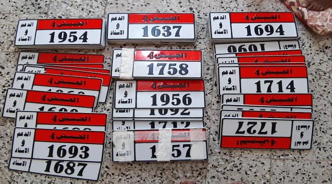 تمكنت قوات الحزام الامني بمحافظة لحج من استعادة لوحات معدنية مرقمة خاصة بالسيارات والعربات العسكرية تابعة لقوى الدعم والاسناد.