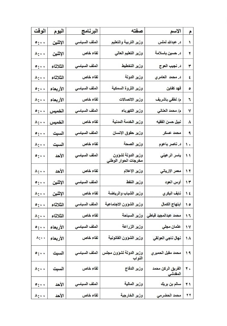 وثيقة تكشف جدول مواعيد وزراء بالحكومة اليمنية للظهور بقنوات الشرعية ومهاجمة التحالف العربي