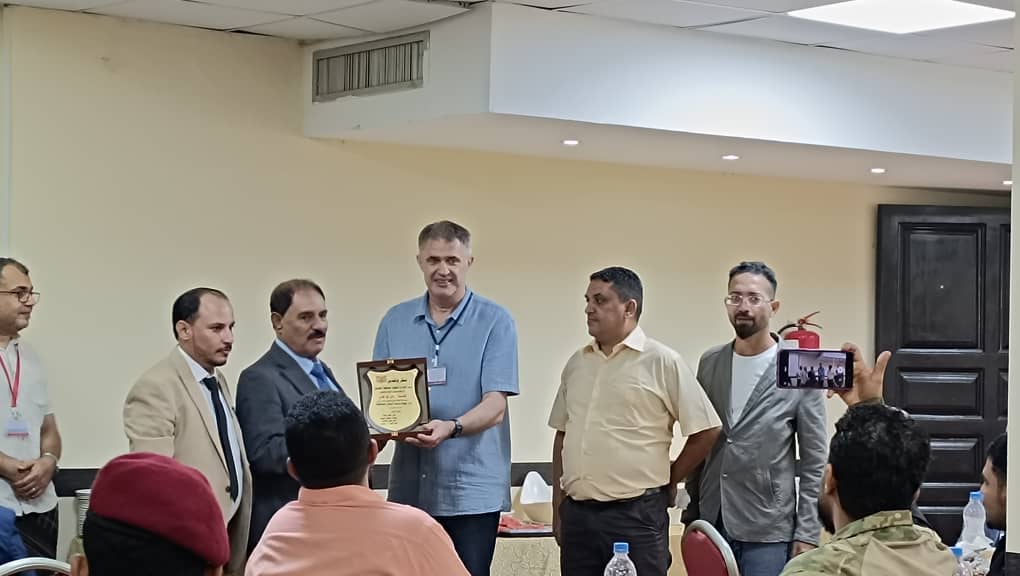 وشهد التكريم حضور ،الدكتور ناظم عبدالله سالم الحنكي – رئيس دائرة التعاون الاقليمي والدولي برئاسة الوزراء ،وكذلك الدكتور عارف الداعري رئيس دائرة الخدمات الطبية للقوات المسلحه والأمن الجنوبي،ووكيل المحافظة لشؤون المنظمات رئيس هيئة الاغاثة والأعمال الانسانيه ألاستاذ -اكرم قاسم مقبل، ومستشار المحافظ لشؤون المنظمات المهندس -صابر الشفيري وعدد من أعضاء السلطات المحلية للمكاتب التنفيذية على مستوى محافظات الجنوب