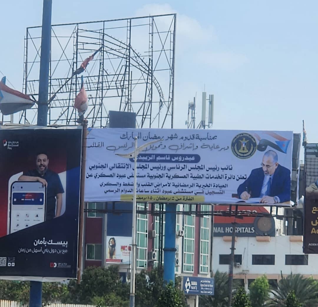 دشنت دائرة الخدمات الطبية العسكرية للقوات المسلحة الجنوبية صباح اليوم الأربعاء الموافق 5 مارس 2025م المخيم الطبي المجاني لأمراض القلب والضغط والسكر في مستشفى عبود العسكري برعاية كريمة من الرئيس القائد عيدروس الزُبيدي، رئيس المجلس الانتقالي الجنوبي، القائد الأعلى للقوات المسلحة الجنوبية، نائب رئيس مجلس القيادة الرئاسي.