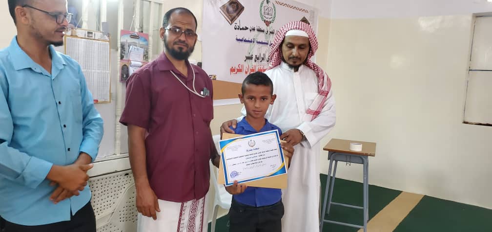 وفي حفل التكريم الذي حضره رئيس جمعية المستقبل الإجتماعية للتنمية المهندس/ أمين البرهمي، ورئيس اللجنة المجتمعية في منطقة حمادة الاستاذ/ ميثاق قائد علي تم تكريم الفائزين في مسابقة القرآن الكريم بشهائد تقديرية ومبالغ رمزية ك خطوة تشجيعية أولى نظير جهودهم المباركة في السير نحو حفظ كتاب الله تعالى والعمل به.