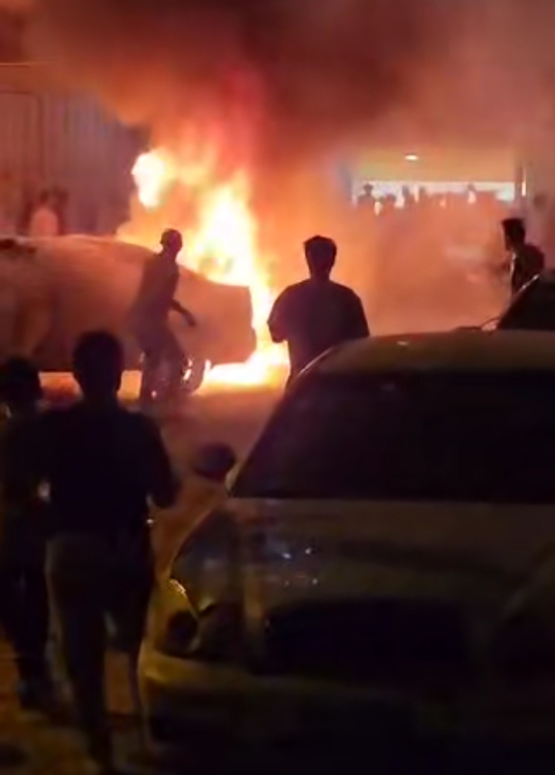 ووفقًا لشهود عيان، فقد أتى الحريق على عدد من السيارات المتوقفة في التقاطع، بعد أن امتد من سيارة واحدة نتيجة انفجار ألعاب نارية بالقرب منها.