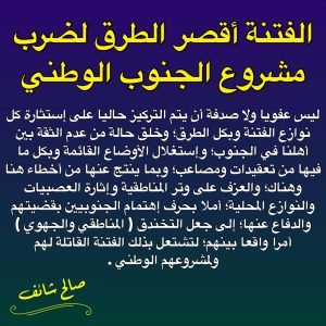 أ/صالح شائف: الفتنة أقصر الطرق لضرب مشروع الجنوب الوطني