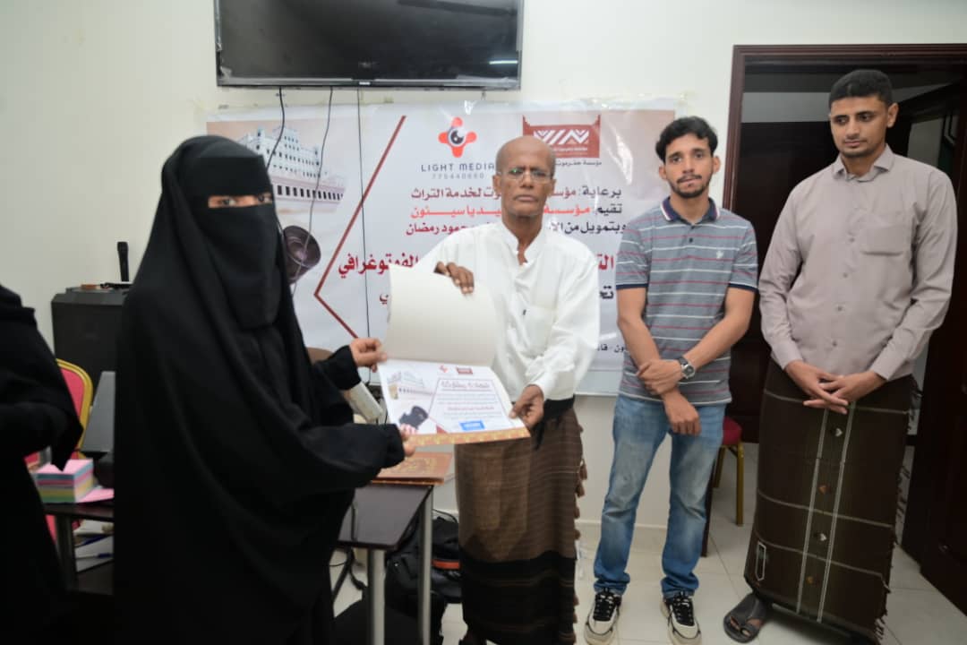 وفي ختام الدورة، جرى تكريم 19 متدربة أكملن البرنامج التدريبي بنجاح، وسط أجواء احتفالية عبّر فيها الأستاذ حسن باحشوان، رئيس مؤسسة حضرموت لخدمة التراث، عن اعتزازه بمستوى المتدربات وتفاعلهم، مؤكدًا أن هذه الدورة تأتي ضمن جهود المؤسسة في دعم وتمكين الفتيات، وتحديدًا في مجالات الثقافة والتوثيق البصري للتراث المحلي، بما يسهم في الحفاظ على الهوية الحضرمية من خلال عدسة الكاميرا.