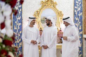 حضر اللقاء .. سمو الشيخ منصور بن زايد آل نهيان نائب رئيس الدولة نائب رئيس مجلس الوزراء رئيس ديوان الرئاسة وسمو الشيخ حمدان بن محمد بن زايد آل نهيان ومعالي الشيخ محمد بن حمد بن طحنون آل نهيان مستشار الشؤون الخاصة في ديوان الرئاسة.