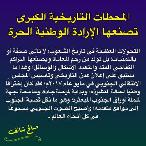أ/صالح شائف : المحطات التاريخية الكبرى تصنعها الإرادة الوطنية الحرة