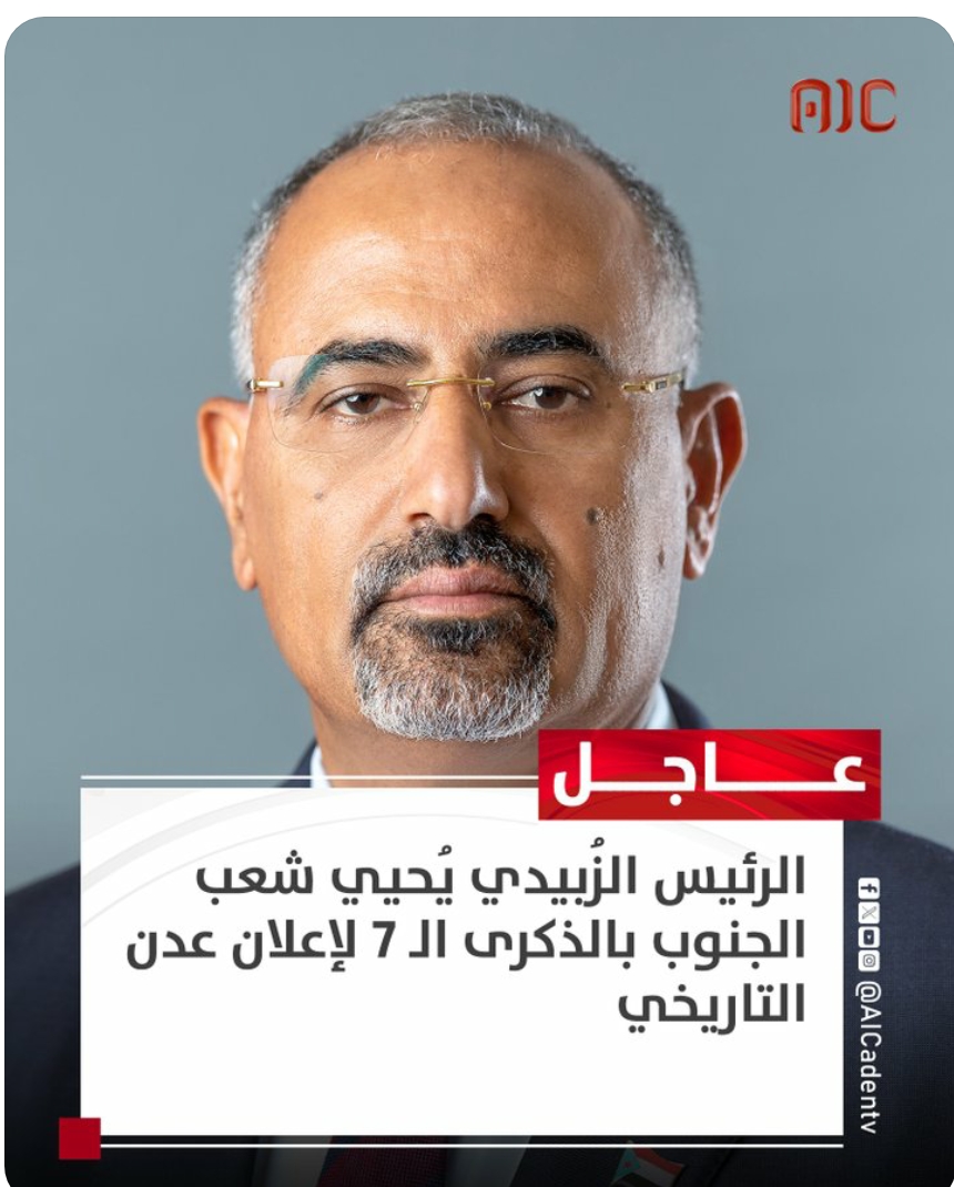 الرئيسيِة/اخبار وتقارير/عاجل.. الرئيس الزُبيدي يُحيي شعب الجنوب بالذكرى الـ 7 لـ اعلان عدن التاريخي اخبار وتقارير عاجل.. الرئيس الزُبيدي يُحيي شعب الجنوب بالذكرى الـ 7 لـ اعلان عدن التاريخي صحيفة النقابي الجنوبي./آخر تحديث: 4 مايو، 2024 صحيفة النقابي الجنوبي./آخر تحديث: 4 مايو، 2024
