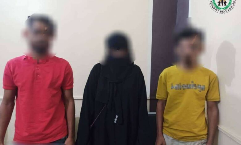 إدارة مكافحة المخدرات في الحزام الأمني تُلقي القبض على امرأة وشابين بحوزتهم حبوب مخدر بعدن