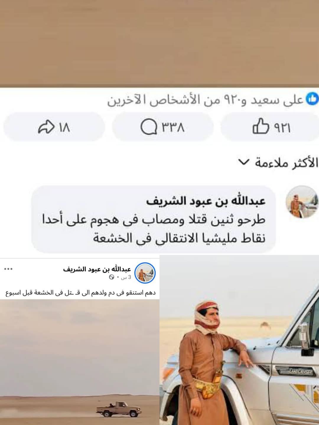ونشر الارهابي عبدالله الشريف، عبر صفحته الرسمية على موقع فيسبوك، مقطع فيديو يُظهر لحظة تحرك عناصر تنظيم القاعدة على متن أطقم عسكرية انطلقت من وادي عبيدة بمحافظة مأرب، المعقل الرئيسي للتنظيم في اليمن، متجهة لتنفيذ العملية الإرهابية التي استهدفت القوات الحكومية الجنوبية في منطقة الخشعة بوادي حضرموت.