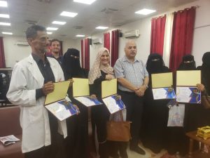 وفي الحقل الذي حضره ايضا الدكتورة / رجاء عبده ، المسؤولة عن معهد التمريض عدن ،ومدير مستشفى عدن الألماني الدكتور/ محمد العياشي، ونخبة الطاقم التمريضي للمشفى.