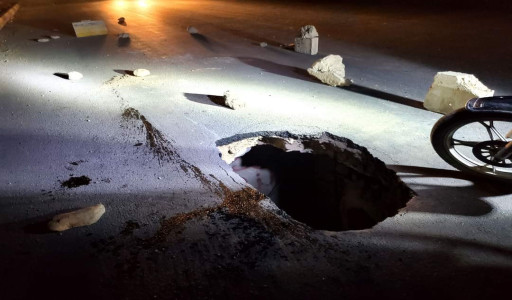 كشفت مصادر عن انهيار ارضي في وسط شارع الـ 60 بعد نقطة الكهرباء بـ٥٠ متر.