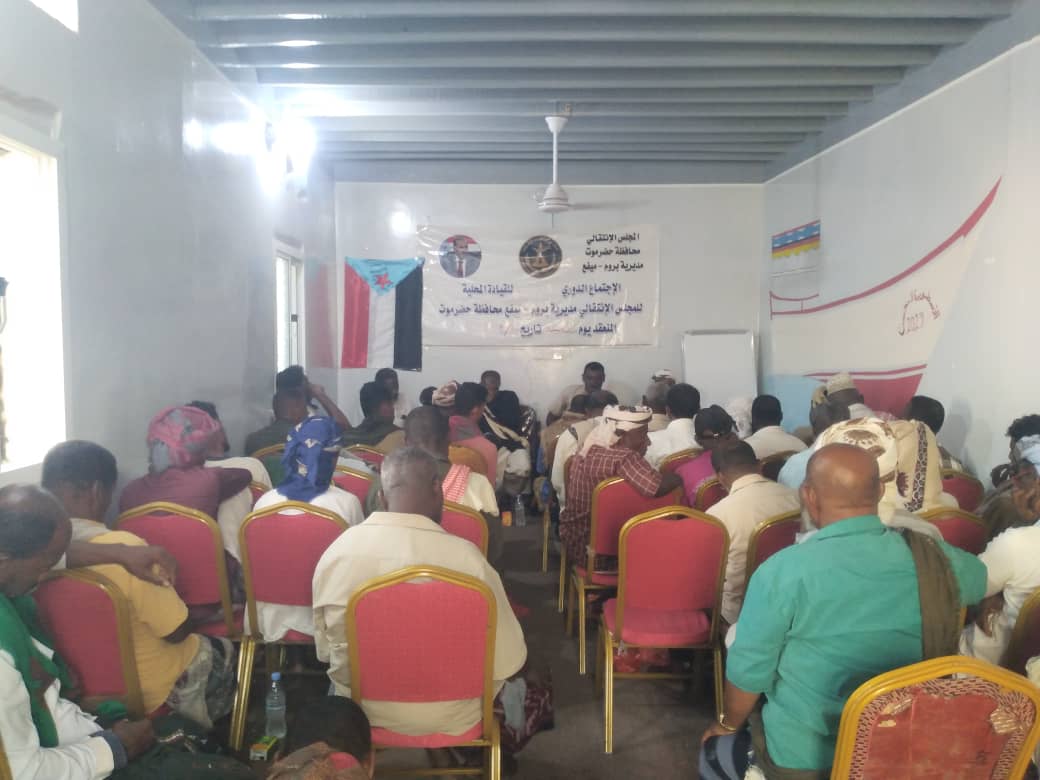 عقدت القيادة المحلية للمجلس الانتقالي الجنوبي بمديرية بروم ميفع بمحافظة حضرموت عصر اليوم الجمعة ،اجتماعها للفصل الأول لعام ٢٠٢٤م ،برئاسة الأخ ناصر التميمي رئيس الهيئة التنفيذية .