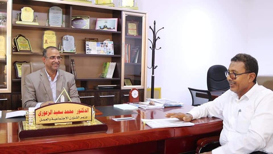 التقى معالي وزير الشؤون الاجتماعية والعمل الدكتور محمد سعيد الزعوري ،صباح اليوم، بديوان عام الوزارة بالعاصمة عدن بالاخ م /صالح مساعد الامير رئيس الاتحاد التعاوني الزراعي الجنوبي وخلال اللقاء أطلع معالي الوزير على سير أعمال الاتحاد التعاوني الزراعي الجنوبي منذ إعادة تأسيسه.