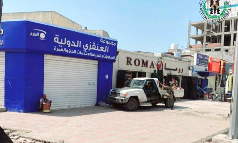 قوات الحزام الأمني تُغلق (57) مكتب من مكاتب السفريات المخالفة بالعاصمة عدن