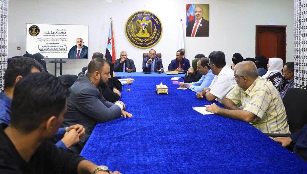نظمت الدائرة السياسية بالأمانة العامة لهيئة رئاسة المجلس الانتقالي الجنوبي، بمشاركة الهيئة السياسية المساعدة لهيئة رئاسة المجلس، اليوم الثلاثاء في العاصمة عدن، محاضرة بعنوان “مستجدات العملية السياسية ومحورية قضية شعب الجنوب فيها” لرؤساء وأعضاء كافة دوائر الأمانة العامة.