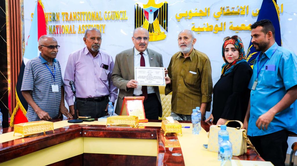 كرّم منتدى الباهيصمي الثقافي الفني بالعاصمة عدن، اليوم الثلاثاء، الأستاذ علي عبدالله الكثيري رئيس الجمعية الوطنية للمجلس الانتقالي الجنوبي، بدرع بدرع المحبة والوفاء للعام 2024.