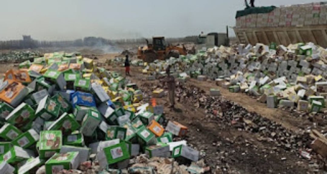 مكتب الصناعة في العاصمة عدن يُتلف آلاف الكراتين من منتجات مغشوشة