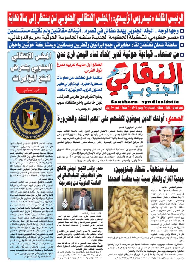 صحيفة النقابي الجنوبي في عددها الجديد يوم غدا الاحد الموافق 2/6/2024 في الاكشاك