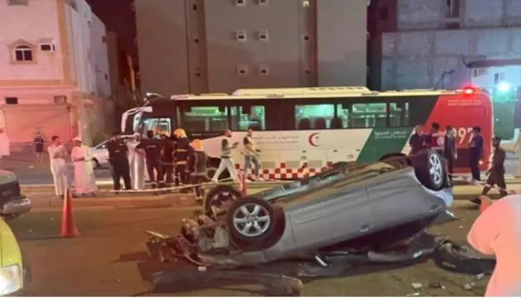 انقلاب مركبة في مكة المكرمة تسبب كارثة.