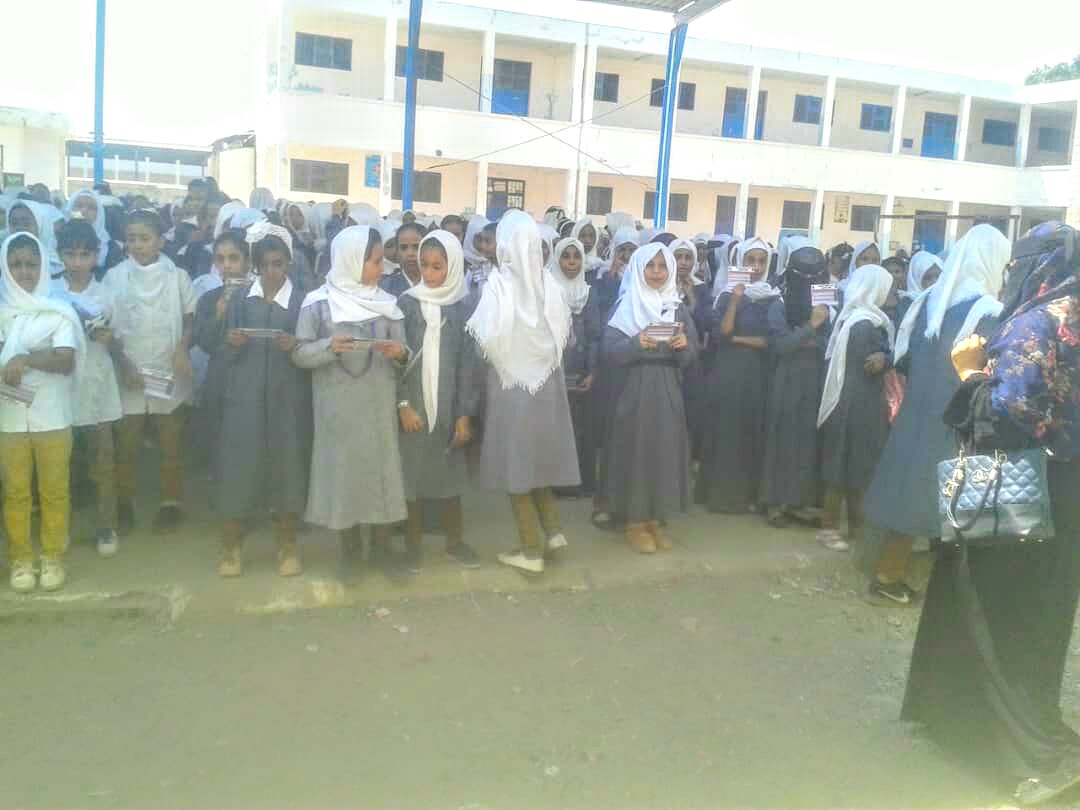 وفي الطابور المدرسي حملت الطالبات الكرت ورددن النشبد منه بصوت يملؤه الحماس الطلابي في ترديد النشيد وانتقلت قيادة النقابة الى مدرسة ابن زيدون وتم تسليم الكروت للادارة المدرسية وعلى بقية المدارس في مديرية المنصورة