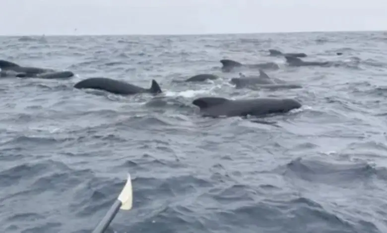 1000 حوت ترافق مغامراً يجدف بمفرده عبر الأطلسي