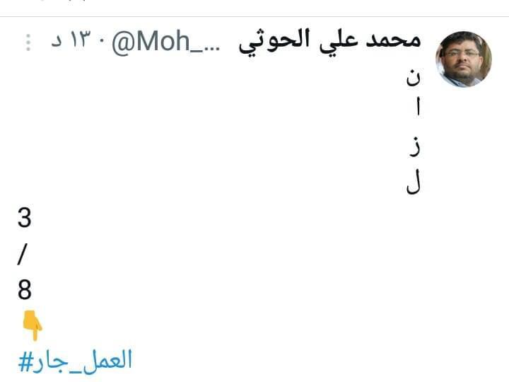 غرد القيادي الرافضي محمد علي الحوثي في صفحته الشخصية قبل ساعات بانه نازل