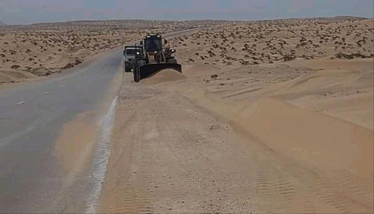 قامت الفرق الهندسية بمؤسسة صيانة الطرق والجسور بمحافظة المهرة بإزاحة الكثبان الرملية التي زحفت على الطريق الدولي الساحلي في عدد من المناطق الواقعة على مسار الطريق نتيجة الرياح الموسمية.